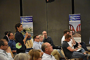 Im einführenden Gespräch stand Jochen Pöttgen, Leiter der Regionalvertretung Bonn der Europäischen Kommission, der Moderatorin Mareen Hirschnitz Rede und Antwort. Er verglich die EU mit einem Hausmeister an einer Schule, der nur sichtbar werde, wenn etwas nicht funktioniere. „Sonst hört und sieht man nichts von ihm. So ist es auch mit der EU.“ Er rief alle Anwesenden dazu auf, wenn die EU mal wieder pauschal kritisiert werde, genau hinzusehen. „Reflektieren Sie mal eine halbe Minute, wer ist denn die EU? Es gibt nicht die EU, sondern es gibt die Europäische Kommission, die Vertretung der Mitgliedstaaten, den Rat, und das Europäische Parlament. Pauschalurteile sind zu einfach und dienen oft dazu, Zuständigkeiten zu vernebeln.“ Seine Kritik war in erster Linie auf die Regierungen der Mitgliedstaaten gemünzt, die „Brüssel“ für eigene Unzulänglichkeiten verantwortlich machten.