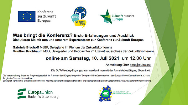 Online-Regionalgespräch der Europa-Union Baden-Württemberg am 10. Juli 2021