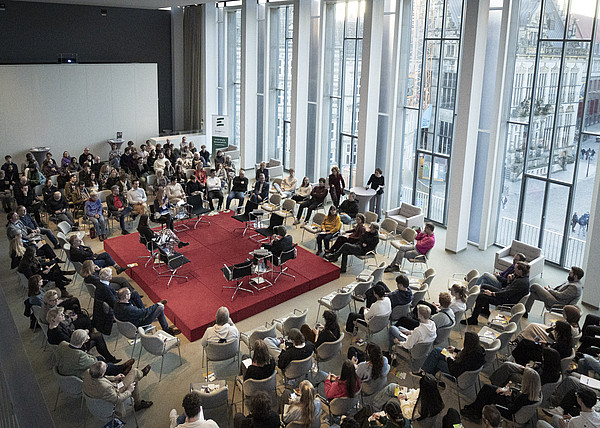 Knapp 100 Tage vor den Europawahlen kamen am 7. März 2024 über 150 Gäste zum zweiten "European Townhall Talk" zusammen, um über die Gefahren eines Rechtsrucks bei den Wahlen zu diskutieren. Im Festsaal der Bremischen Bürgerschaft tauschten sich die Teilnehmenden im dynamischen Fish-Bowl-Format mit Prof. Dr. Pia Lange, Direktorin des Zentrums für Europäische Rechtspolitik, Dr. Thomas Köcher, Leiter der Landeszentrale für politische Bildung Bremen, und Helga Trüpel, Vorsitzende der Europa-Union Bremen und ehemalige Europaabgeordnete, aus.