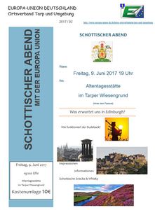 Zur Einstimmung auf eine Edinburgh-Reise, die der Ortsverband der Tarper Europa-Union vom 1.-6. September 2017 durchführen wird, fand im Tarper Wiesengrund ein "Schottischer-Abend" statt. » weiterlesen