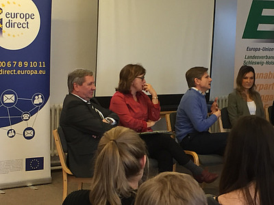 Gemeinsam führten am 03.12.15 die Academica Baltica und die Europa-Union Flensburg das "Sankelmarker Europagespräch" durch. In einer von Roland Hartmann (Vorsitzender Europa-Union Flensburg) moderierten Podiumsdiskussion stellten sich Reimer Böge, MdEP, Thomas Nolte (Pastor), Thomas Dethleffsen (Ratsherr der Stadt Flensburg) und Amirmokhtar Asadi (Flüchtling) dem Thema "Flüchtlinge - Eine Herausforderung für Europa". » weiterlesen