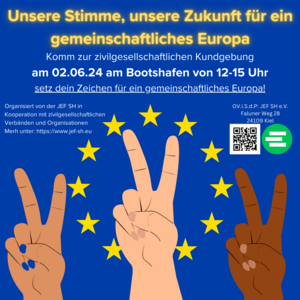 In Kooperation mit mehreren Verbänden, Gewerkschaften und zivilgesellschaftlichen Organisationen rufen die Jungen Europäischen Föderalist*innen Schleswig-Holstein zur Teilnahme an der Europawahl am 09. Juni 2024 auf. Seid dabei und setzt ein Zeichen für ein gemeinschaftliches Europa! » weiterlesen