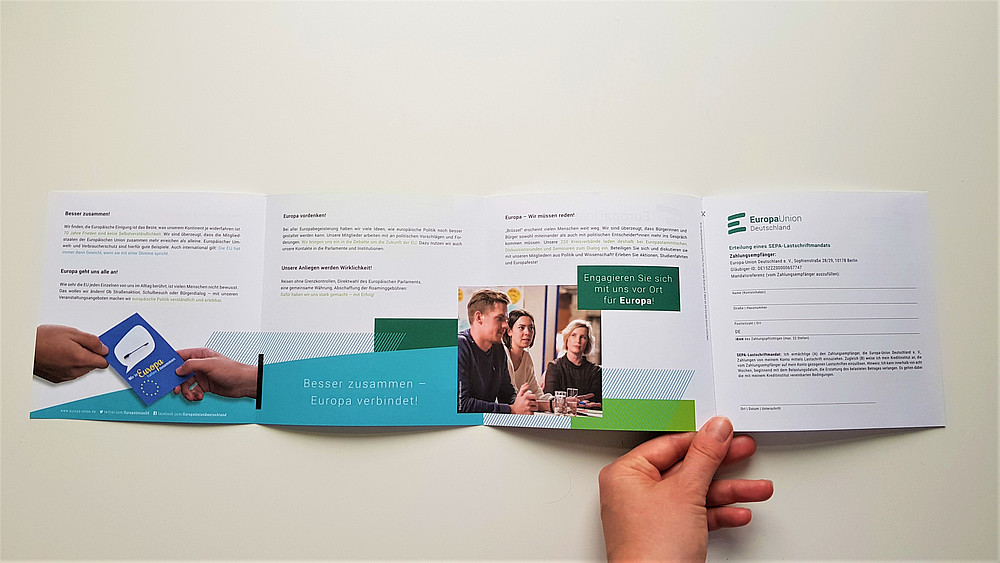 Der Mitgliederflyer kann bei der Bundesgeschäftsstelle kostenlos bezogen werden. Die Datei zur Ansicht finden Sie hier. Der Mitgliederflyer liegt nicht als bearbeitbare Vorlage/Template vor.