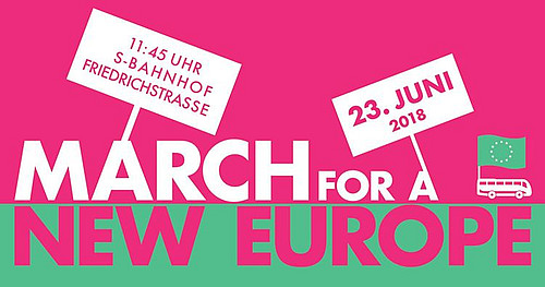 Am 23. Juni, zwei Jahre nach dem Brexit-Referendum, gehen in Berlin und weiteren Städten Europäerinnen und Europäer auf die Straße, um ein Zeichen gegen Nationalismus und Populismus zu setzen. Mit dem „March for a new Europe“ fordern sie ein Europa der Bürgerinnen und Bürger, ein friedliches Europa der Demokratie, Solidarität und Nachhaltigkeit. Die Berliner Demo startet um 12 Uhr am S-Bahnhof Friedrichstraße und führt an der Britischen Botschaft vorbei zum Bebelplatz. Die von "The European Moment" initiierten Demonstrationen werden… » weiterlesen