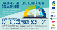 Am 2. Dezember um 18 Uhr findet unser nächster Online-Bürgerdialog zum Thema Wirtschaft und Soziales statt. Seien Sie dabei und diskutieren Sie mit Dr. Christian Bäumler, EWSA-Mitglied und 1. Stellv.…