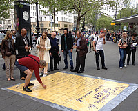 Wie kann Europa demokratischer werden? Dies war das Motto zweier Bodenzeitungen, die Aktive von Europa-Union und JEB am 9. Mai an zentralen Plätzen in Berlin zeigten. Am Ku’Damm und am Hackeschen…