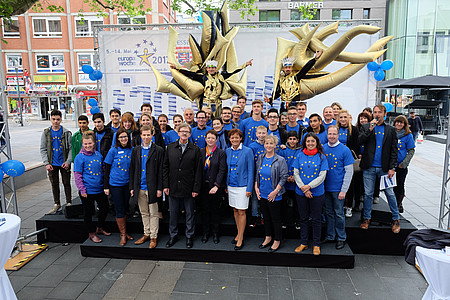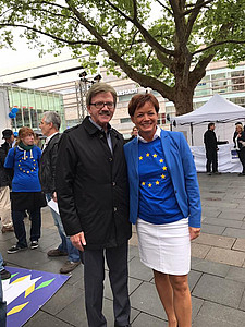 Mitten in der Fußgängerzone von Wiesbaden fällt der Startschuss für eine Vielzahl von Veranstaltungen vom 5. bis 14. Mai, an denen Zehntausende teilnehmen werden. Wir stehen Rede und Antwort, die Europaministerin Lucia Puttrich, eine Vertreterin der Partnerregion Aquitaine und ich als MdEP und Landesvorsitzender der Europa Union Hessen. Wir sind voller Hoffnung für einen Erfolg eines Pro-Europäers in Frankreich. Bonne Chance, Emmanuel Macron!