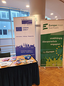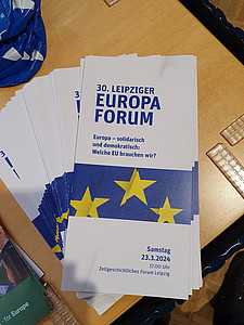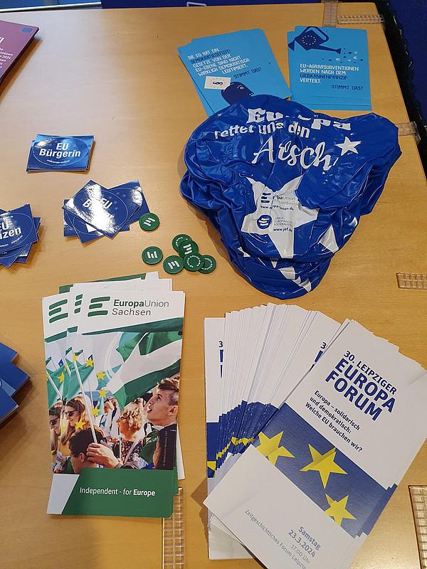 Zur Leipziger Buchmesse beteiligte sich die Europa-Union Sachsen mit dem Europa-Haus Leipzig und anderen Kooperationspartnern am 30. Europaforum. Der Frage "Welche EU brauchen wir?" wurde nachgegangen und festgestellt, dass das Motto "Europa-solidarisch und demokratisch" des Europaforums genau das passende zur Wahl des Europäischen Parlamentes am 09. Juni diesen Jahres ist.