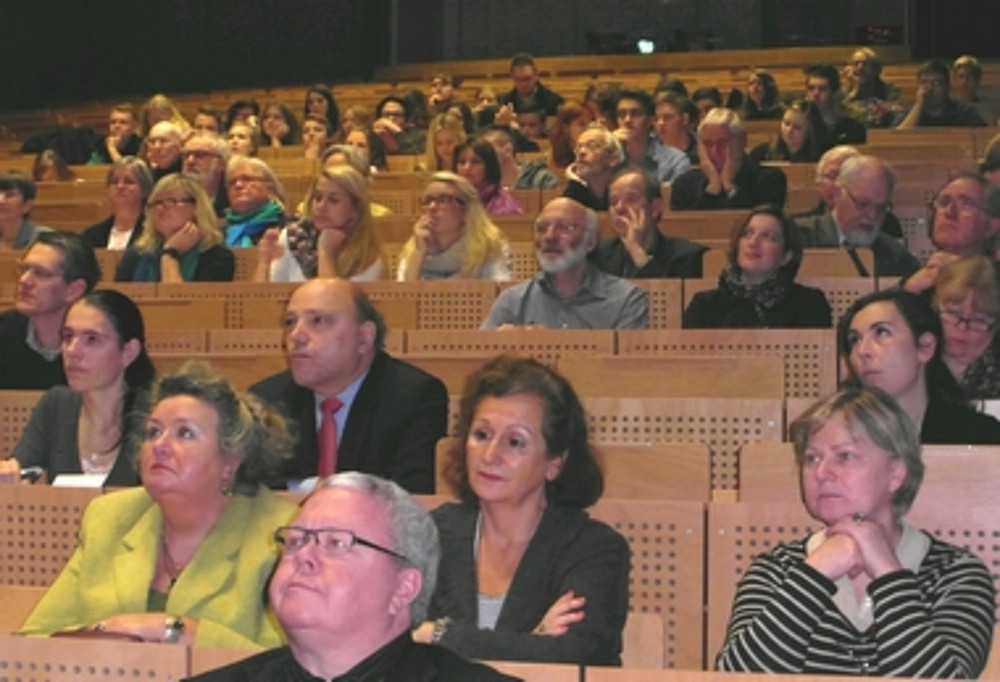 Dr. Christoph Müller vom Potsdamer Institut für Klimafolgenforschung den Einfluss des Klimawandels auf Nahrungsressourcen. Er machte deutlich, dass diese aufgrund des weltweiten Bevölkerungswachstums und des Klimawandels unter einem enormen Druck stünde, der in naher Zukunft eher zu- als abnehmen werde. Um das Problem zu lösen, müssten auch die Europäer ihre Ernährungsgewohnheiten umstellen. So könne zum Beispiel jeder Einzelne durch einen geringeren Konsum von Fleisch und tierischen Produkten dazu beitragen, die Folgen des Klimawandels konstruktiv zu gestalten und aufzufangen.