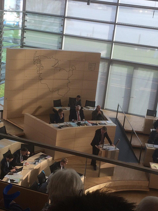 Vor dem Besuch des Plenums wurde der Gruppe beim Empfang die Struktur und der Aufbau des Landtages vorgestellt. Daraufhin durften die 27 Mitglieder und Gäste der Europa-Union auf der Besuchertribüne für eine gute Stunde Platz nehmen. Die Sitzung begann mit einer Erinnerung an den Matrosenaufstand 1918. Das Plenum diskutierte die Ziele des Aufstandes, die vielseitig und teilweise sogar politisch uneinig waren. Erstmal ging es einfach um ein Ende des Hungerns, ein Ende des Sterbens. Das Ende eines Krieges, mit Ausmaßen, die man vorher so noch nicht gekannt hatte. Man solle mit Stolz und Erfurcht über diese mutigen Menschen berichten, so der Tenor der Sitzung.