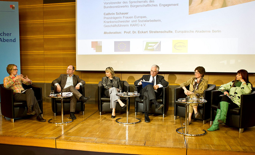 Ob das Europäische Jahr der Freiwilligentätigkeit wirklich dazu geeignet ist, bürgerschaftliches Engagement nachhaltig zu befördern, bezweifelte Ursula Fehling vom Deutschen Bundesjugendring: „Europäische Jahre kommen und gehen, wir bearbeiten das Thema Freiwilligenarbeit kontinuierlich.“ Um die europäische Dimension von ehrenamtlichem Engagement zu fördern, sei länderübergreifender Jugendaustausch besonders geeignet. Dieser erweitere den Horizont und trage dazu bei, ein europäisches Gemeinschaftsgefühl zu entwickeln. In diesem Zusammenhang hob EUD-Präsidiumsmitglied Dr. Sylvia-Yvonne Kaufmann die Europäische Bürgerinitiative hervor, mit der ab April 2012 direkte Demokratie auf europäischer Ebene möglich wird. Eine Millionen EU-Bürger aus mindestens sieben Mitgliedstaaten können dann die Europäische Kommission dazu auffordern, von ihrem Gesetzesinitiativrecht Gebrauch zu machen. Für eine erfolgreiche Kampagne benötige man die Mithilfe von zahlreichen ehrenamtlich Engagierten.