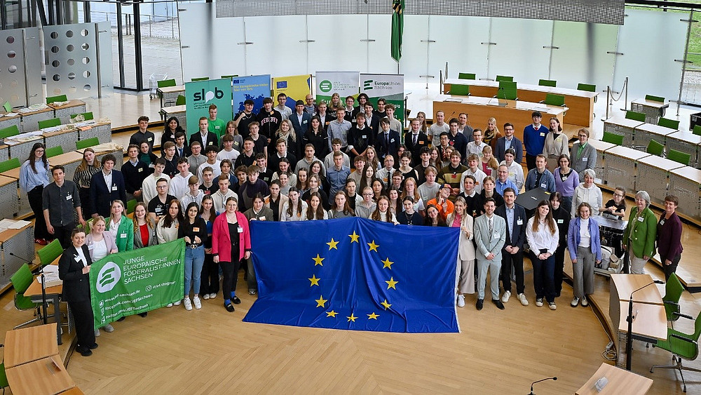 Aber auch für die Lehrkräfte war die SimEP Sachsen anregend: sie konnten ihren Schüler:innen im Plenum beim Debattieren zusehen und hatten zudem die Möglichkeit an einem Workshop teilzunehmen, um sich zu Europa im Unterricht auszutauschen. Katharina Wolf, Landesvorsitzende der Europa Union Sachsen dazu: „Die Gestaltung eines Lehrerworkshops als Begleitformat zur SimEP halte ich für sehr wichtig. So können die Lehrkräfte Input in den Unterricht mitnehmen, während sich die Schülerinnen und Schüler frei in ihrer neuen Rolle als Abgeordnete entfalten können. Es ist ein großer Erfolg, dass sich die Anmeldungen in diesem Jahr verdreifacht haben. Die Absenkung des Wahlalters auf 16 Jahre ist völlig richtig. Sie Schülerinnen und Schüler zeigten sich ihrer Verantwortung deutlich bewusst. Die SimEP ist inzwischen ein wichtiger Baustein der politischen Bildung in Sachsen.“