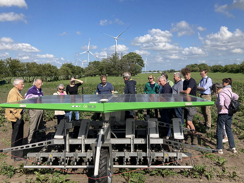 Im Zuge des Green Deal wird nicht nur der Ausbau der Erneuerbaren Energien voran gebracht, sondern auch die komplette Industrielandschaft umgebaut. Doch kann das ohnehin schon ambitionierte Vorhaben angesichts der Folgen der Corona-Pandemie und des russischen Angriffs auf die Ukraine überhaupt noch gelingen? Diese und weitere Fragen standen am vergangenen Wochenende (11./12.06.22) beim Verbandsseminar der Europa-Union Schleswig-Holstein in der Europäischen Akademie in Sankelmark im Mittelpunkt. Nach einer Einführung ging es für die rund 30 Teilnehmenden vor allem um Energieversorgung, Artenvielfalt und auch darum, wie jeder von uns seinen eigenen Alltag nachhaltiger gestalten kann. Der persönliche Austausch kam an einem sommerlichen Abend in der neuen Seebar der Akademie auch nicht zu kurz. Highlight und Schlusspunkt des zweitägigen Verbandsseminars war ein Ausflug nach Sprakebüll. Der Ort in Nordfriesland ist unter anderem Vorreiter in Sachen E-Mobilität. Davon konnten sich die Teilnehmenden selbst überzeugen und mit der Besichtigung des „Farmdroiden“ die smarte Zukunft der Landwirtschaft kennenlernen.