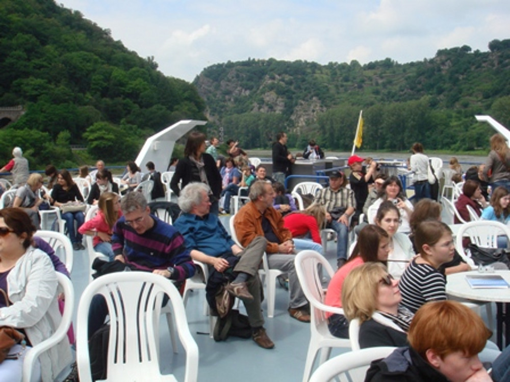 Bild: Sonderschifffahrt für jugendliche Europa-Preisträger und ihre Begleiter auf dem Rhein zur Loreley (Foto: R. Däuwel-Türk)
