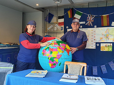 Mit dem mit Werbung für die Europa-Union und der Teilnahme an der Europawahl beklebten Truck werden belebte Plätze aufgesucht.