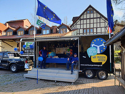 Auf Initiative des Ehepaars Marianne und Roland Hühn tourt in diesem Frühling der erste Europa-Truck durch Deutschland, Hessen und den Schwalm-Eder-Kreis.