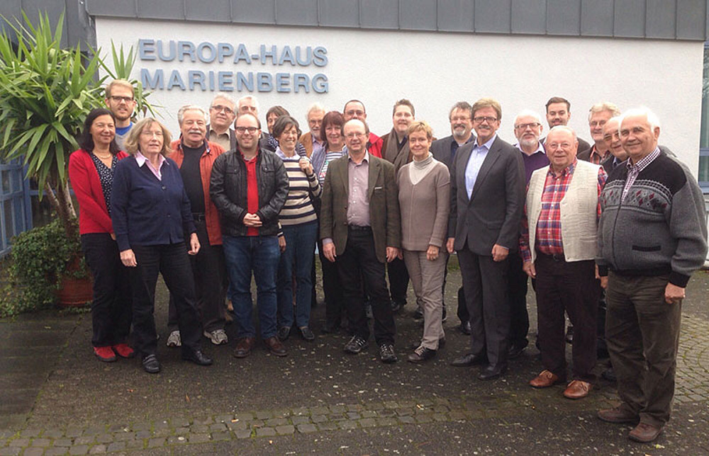 Den Nachmittag gestaltete Dr. Otto Schmuck, Präsidiumsmitglied der Europa Union Deutschland (EUD), mit einem Vortrag zum "Neustart für Europa". Er befasste sich mit der künftigen institutionellen und vertraglichen Ausgestaltung der EU. Dabei spielte die Debatte um einen möglichen Austritt Großbritanniens eine besondere Rolle. In Workshops wurden kontroverse Standpunkte erörtert. Eine klare Mehrheit der Teilnehmer entschied sich für Verhandlungs- und Kompromissbereitschaft gegenüber den Briten. Einige Forderungen aus London sollten konstruktiv aufgegriffen werden, jedoch nur bei Bewahrung des erreichten Besitzstandes und der Forderung, sich notwendige Weiterentwicklungen nicht verbauen zu lassen.