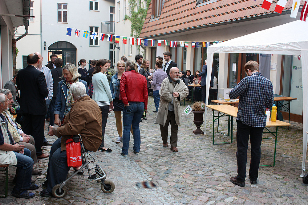 Neben zahlreichen Mitgliedern, Parlamentariern und anderen „Berufseuropäern“ fanden sich viele interessierte Bürger aller Altersgruppen von Berlin bis New York zusammen, um den Europatag in kommunikativer Runde ausklingen zu lassen.