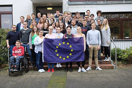 "Deine Zukunft - Deine Meinung" mit dem Thema „Asyl- und Flüchtlingspolitik der EU“. Nachdem sich die Schüler*innen der Sachsenwaldschule aus Reinbek und des Gymnasiums am Mühlenberg aus Bad Schwartau kennengelernt hatten, startete der thematische Einstieg durch ein interaktives Quiz. Daran hatten alle viel Spaß und lernten gleichzeitig die Grundlagen der EU spielerisch kennen. Im Anschluss daran begann die Arbeit in Kleingruppen zusammen mit den Teamer*innen der JEF. Dabei wurden Themen wie Obergrenzen, der Ukrainekonflikt oder auch die Frage nach einer EU-Armee von verschiedenen Seiten kritisch betrachtet und diskutiert. Nach dem gemeinsamen Abendessen trafen sich alle Teilnehmenden zu einem gemütlichen Filmabend wieder.