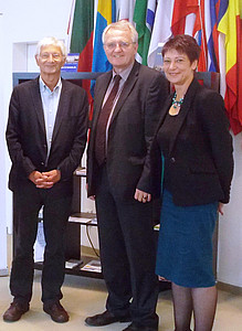 Rainer Wieland und Hermann Kuhn, Landesvorsitzender der Europa-Union Bremen, wiesen darauf hin, dass sich der Verband insbesondere für die sachbezogene überparteiliche europapolitische Auseinandersetzung anbietet und warben für eine größere Berücksichtigung der Europa-Union in der Arbeit der Abgeordneten.