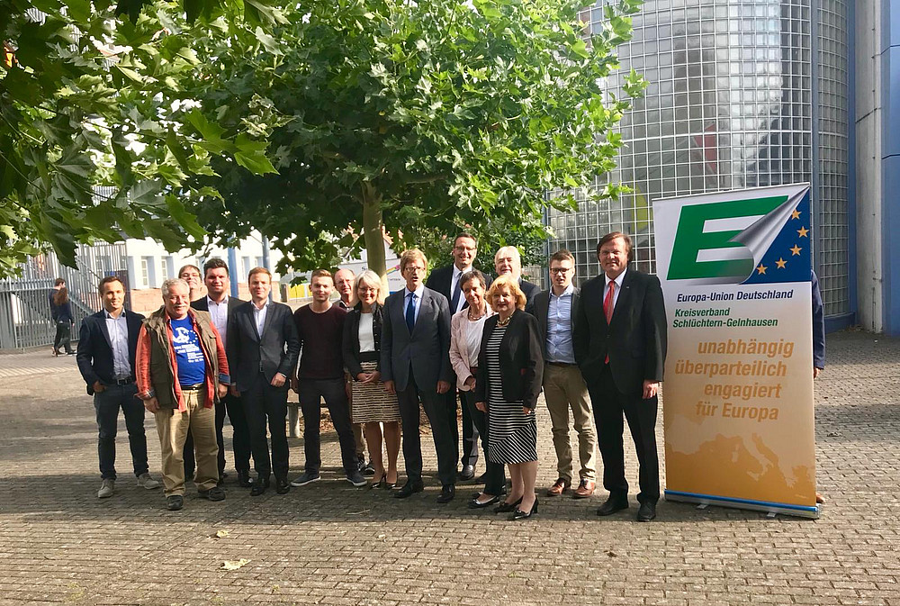 Neben Grußworten von Landrat und Bürgermeister zeigten sich die Anwesenden interessiert an den Ausführungen der Hessischen Europaministerin Lucia Puttrich, die die Europastrategie des Landes Hessens vorstellte und emotional für die Werte der Gemeinschaft warb. In ihren Jahresberichten zeigten sich Landesvorsitzender Thomas Mann und Landesgeschäftsführer Sven Ringsdorf erfreut über die weitgehend stabilen Mitgliederzahlen. Nachdem in den letzten Jahren altersbedingt einige Verluste zu verzeichnen waren, konnte die Mitgliederzahl gerade vor dem Hintergrund erwachsender PRO-europäischer Stimmung auf 1500 Mitglieder stabilisiert werden.