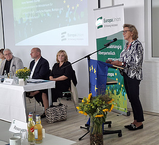 Dass die überparteiliche Europa-Union einen wesentlichen Beitrag zur Rekord-Wahlbeteiligung in Schleswig-Holstein beigetragen habe, hatte zuvor Europa-Staatssekretärin Anne Benett-Sturies in ihrem Grußwort deutlich gemacht. Sie bedankte sich für das Engagement des Verbandes und betonte, die gute Zusammenarbeit zwischen Politik und Ehrenamt in Schleswig-Holstein.