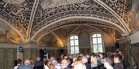 Neben klassischen Grußworten durch den Hausherrn Prof. Dr. Claus von Carnap-Bornheim, den Vorsitzenden des Literaturhauses SH Wolfgang Griep, der Ministerin für Bildung, Wissenschaft und Kultur Karin Prien sowie dem Bürgervorsteher der Stadt Schleswig Eckhard Haeger lasen einige Referenten Auszüge aus literarischen Werken der Gastländer. So stellte Dr. Christian Meyer-Heidemann, Landesbeauftragter für politische Bildung, den Roman „Das Tierreich“ von David Albahari vor. Auch Uwe Döring, Landesvorsitzender der EUSH, sorgte mit seinem Auszug aus dem Roman „Ein herrlicher Ort für das Unglück“ von Damir Karakaš für eine heitere Atmosphäre im herrschaftlichen Hirschsaal. Der serbische Autor Dževad Karahasan las aus seinem Roman „Der Trost des Nachthimmels“. Ebenso gab der Verleger Lojze Wieser einen Einblick in die Literatur der drei Gastländer.