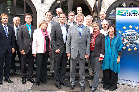 Die Tagung wurde am Freitagnachmittag vom Landesvorsitzenden Thomas Mann MdEP eröffnet. Er gab einen positiven Rückblick auf die Aktivitäten der letzten zwei Jahre. Als europäische Vereinigung habe man sich intensiv damit beschäftigt, europäische Strategien und Konzepte zu den Bürgerinnen und Bürger zu tragen und die Brücke zwischen den fern erscheinenden europäischen Institutionen und den Menschen vor Ort zu schlagen. „Nie war uns Europa näher!“ appellierte Thomas Mann an die Versammlung, auch weiterhin aktiv für den europäischen Gedanken und europäische Werte einzutreten. Rainer Wieland MdEP, Präsident der Europa-Union Deutschland, ermutigte in einer leidenschaftlichen Rede zur kritischen Auseinandersetzung. Nachfragen und Hinterfragen seien ausdrücklich erlaubt. Die Europa-Union unterstütze keine „Europapolitik von oben“, sondern verfolge das Ziel eines „Europas der Bürgerinnen und Bürger“. Eine der größten Herausforderungen bestünde darin, jungen Menschen Europa näher zu bringen. Umso erfreuter zeigte sich Landesvorsitzender Mann anlässlich der Siegerehrung des Oberstufen-Redewettbewerbs unter der Verantwortung des stellvertretenden Landesvorsitzenden Dr. Sven Simon. Erstmalig fand diese im Rahmen einer Landesversammlung statt, als deutliches Signal für den Aufbruch in ein junges Europa. Die Schülerinnen und Schüler aus ganz Hessen hatten sich mit der Frage des demographischen Wandels und des „Europas von morgen“ beschäftigt. Was bei ihren Reden herauskam, übertraf die Erwartungen der aufmerksamen Zuhörer und stieß auf große Gegenliebe bei der Jury. Luca Laura Hartmann aus Fulda belegte den ersten Platz, gefolgt von Nils Heller aus Egelsbach und Nils Pieper aus Langen, die gemeinsam den zweiten Platz errangen. Die Preise für die drei Gewinner waren neben großzügigen Geldbeträgen eine einjährige kostenlose Mitgliedschaft in der Europa-Union Hessen sowie das Angebot, Praktika im Europäischen Parlament zu absolvieren. Ziel des Wettbewerbes sei es, talentierten Nachwuchs an traditionsreiche Europa-Organisationen heranzuführen, so Mann zu den jungen Preisträgern, denen er für ihr überzeugendes Engagement dankte. Für seinen jahrzehntelangen Einsatz in der Europa-Union Hessen und innerhalb des europäischen Einigungsprozess wurde der Italiener Delio Miorandi mit der seltenen Ehrung „Pro Merito“ ausgezeichnet. Bei den Wahlen am Sonnabend wurden Landesvorsitzender Thomas Mann ebenso bestätigt wie seine Stellvertreter Bruno Bengel, Marianne Hühn, Hildegard Klär und Dr. Sven Simon. Andreas May wurde zum ersten Mal gewählt. Das Team wurde durch Landesgeschäftsführer Timo Röder, Landesschriftführer Santi Umberti sowie neun Beisitzer komplettiert. In großer Einmütigkeit verabschiedeten die Delegierten am Ende der Europa-Tagung eine wegweisende Resolution. Sie steht unter dem Leitspruch „Mehr Europa – weniger Krise“ und soll als Maxime für die Handlungsweise der Föderalisten in den nächsten Jahren bereitstehen.