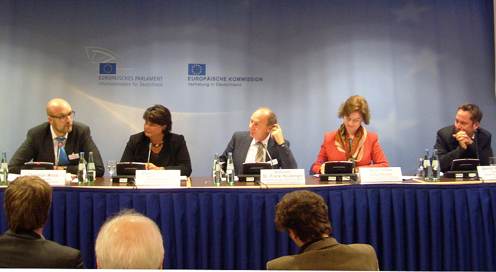 Die Podiumsdiskussion fand im Rahmen der Fachveranstaltung „EU-Förderung für Engagement und Partizipation in Europa“ der Vertretung der Europäischen Kommission in Deutschland und der Kontaktstelle Deutschland „Europa für Bürgerinnen und Bürger“ in Kooperation mit dem Bundesnetzwerk Bürgerschaftliches Engagement und mit Unterstützung des Netzwerks EBD statt. Moderiert wurde sie von Dr. Frank Heuberger, Europabeauftragter des Bundesnetzwerks Bürgerschaftliches Engagement. Der Diskussion waren am Nachmittag Fachvorträge zu den EU-Programmen „JUGEND für Europa“, „Grundtvig“ und „Europa für Bürgerinnen und Bürger“ vorausgegangen, die alle darauf ausgerichtet sind, gesellschaftliches Engagement und politische Beteiligung zu fördern. Besonders angesichts der Umstrukturierung der Programme in der neuen Förderperiode 2014-2020 traf die Veranstaltung auf große Resonanz.