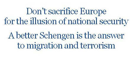 Free movement of people and the abolition of internal border controls between Member States are one of the European Union’s greatest achievements. They have been instrumental in bringing European peoples together and they underpin the European single market. In the eyes of many citizens, they are the best symbol of the triumph of European unity over centuries of divisions. Yet today Schengen and our freedom of movement are under threat. Under the pressure of migration and the fear of terrorism, some national governments want to close national borders and re-establish border controls. They are wrong. National borders and border controls provide no additional security. They divert resources from more effective European measures. They hamper economic recovery. They undermine the very basis of European unity. Giving up on the freedoms that Europe provides for the illusion of security within national borders prevents the development of real answers to the challenges of migration and terrorism and feeds nationalist, populist and anti-European sentiments.