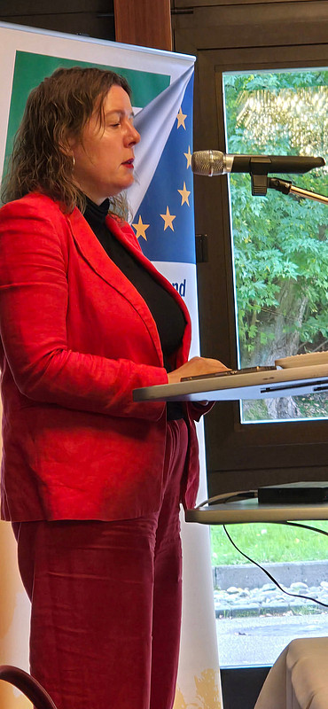 Landesvorsitzende Ute Wiegand-Fleischhacker legte in ihrem Grußwort dar, dass die Antworten, die in diesen herausfordernden Zeiten gefunden werden müssen, in Europa liegen, nicht im Nationalstaat!