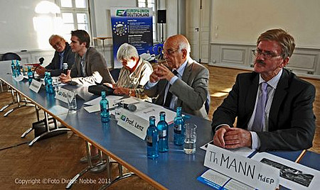Erika Fleuren (stellv. Vorsitzende der SPD 60+ in Hessen) und Christoph Bausewein (Stellv. Landesvoristzender der Jungen Union) als Vertreter der beiden besonders betroffenen Generationen stellten fest, dass das Zusammenleben der Jungen, der Menschen mittleren Alters und der Älteren besser werden müsse. Sie fanden dabei sowohl die Zustimmung der anderen Podiumsgäste und des Publikums. Frau Fleuren machte dabei darauf aufmerksam, dass zum einen die Generation „Praktikum“ mehr Geld für die Ausbildung“ benötige und zum anderen die Generation der Älteren in die Lage versertztwerdenmüsste, ein Leben in Würde zu führen. Damit meine sie nicht nur die Beschaffung von Lebensmitteln, sondern dass vor allem „die Rente vordringlich einem Armutstest unterzogen werden müsse“.Unter der Moderation von Prof. Dr. Carl-Otto Lenz, Generalanwalt beim EUGH a.D. diskutierten auf dem Podium ebenfalls der Landesvorsitzende Thomas Mann MdEP und Pfarrer Herbert Olbrich von den Grünen. In seiner Begrüßung zu Beginn hatte Thomas Mann darauf aufmerksam gemacht, dass das Jahr 2012 auf sein Initiative hin zum „Jahr des aktiven Alters“ erklärt worden sei. Denn unter dem Aspekt des demografischen Wandels müsse es „mehr Ältere im Job“ geben. Danach sorgte der zuständige Kreisverband Weilburg/Oberlahn zur Erholung für einen unterhaltsamen Abend mit Satire, Tanz und Musik aus der Region. Am darauf folgenden Tag trafen sich die Delegierten der 25 Orts- und Kreisverbände, um die Tagesordnung der Jahreskonferenz abzuarbeiten, auf der u.a. Anträge zur Finanz- und Staatsverschuldungskrise und zu den deutschen Betriebsrenten standen, auf die die Europäische Union schon lange ein kritisches Auge geworfen hat.