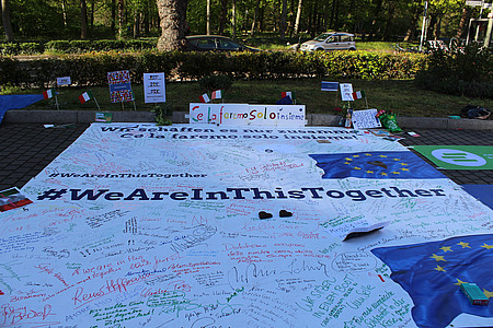 „Uns beunruhigt die Situation in Italien und wir sehen es mit großer Sorge, dass sich derzeit offenbar viele Italiener*innen enttäuscht von der EU und ihren Mitgliedstaaten abwenden. Dabei ist klar, dass wir nur gemeinsam gut aus dieser Krise kommen. Es braucht jetzt mehr denn je echte europäische Solidarität und wir müssen besonders betroffene Länder wie Italien unterstützen“, schrieben die Initiatoren in ihrem gemeinsamen Aufruf. Initiiert wurde die Aktion von der Europa-Union Berlin, der Jungen Europäischen Bewegung, Pulse of Europe, der Deutsch-italienischen Parlamentariergruppe im Bundestag, der Vereinigung Deutsch-Italienischer Kultur-Gesellschaften und weareinthistogether.eu. „Mit der Aktion wollen wir ein starkes Zeichen europäischer Solidarität an die Menschen in Italien senden. Sie brauchen dringend unsere Unterstützung und ein Zeichen des Mutmachens, insbesondere aus unserem Land“, sagte Sylvia-Yvonne Kaufmann, Landesvorsitzende der Europa-Union Berlin.