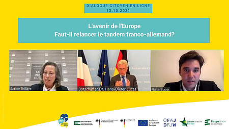 „Schon gleich zu Beginn der Diskussionsveranstaltung erhielten die Teilnehmenden die Möglichkeit, die Fahrtgeschwindigkeit und somit die Arbeitsgeschwindigkeit des deutsch-französischen Tandems zu bewerten. Diesem Stimmungstest zufolge schätzten etwas mehr als die Hälfte der Teilnehmenden die Zusammenarbeit als zu langsam, der zweitgrößte Teil als eher durchschnittlich ein. […] Nichtsdestotrotz betonte der deutsche Botschafter Dr. Hans-Dieter Lucas, Botschafter Deutschlands in Frankreich und Monaco, die zahlreichen Erfolge der deutsch-französischen Kooperation: Vom Normandie-Format, dem Afrika-Dialog, bis hin zum EU-Wiederaufbaufonds und dem neuen Freundschaftsvertrag von Aachen; die Liste der konkreten Erfolge sollte man nicht ausblenden. Sie stellen wichtige Schritte dar und beweisen „einiges an Dynamik und Substanz“. […]