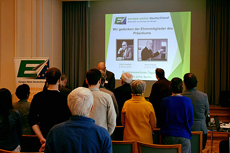 Mit einer Gedenkminute nahm der Bundesausschuss der Europa-Union Deutschland am 3. März Abschied von Arno Krause und Horst Seefeld, die im Januar beide im Alter von 87 Jahren verstarben. Bundesausschussvorsitzender Franz J. Klein würdigte die Verdienste der beiden Europäer der ersten Stunde, die sich Europa zur Lebensaufgabe gemacht hatten. Arno Krause und Horst Seefeld gehörten dem Präsidium der Europa-Union als Ehrenmitglieder an.