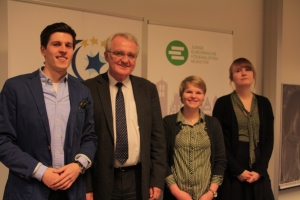 Wenn komplexe Sachverhalte grob vereinfacht, offenkundige Unwahrheiten als ‚alternative Fakten‘ präsentiert und fragwürdige Parolen gerufen werden, dann hat der Populismus Eingang in die politischen und gesellschaftlichen Debatten gefunden. Als Phänomen ist es nicht neu, dennoch rückt es zunehmend in die Mitte der Gesellschaft und bewegt ganz Europa. In der Uni Münster diskutierten hierüber am 3. Februar rund 140 Studierende und Gäste mit EUD-Präsident Rainer Wieland. Zu der Debatte „Versinkt Europa im Populismus?“ hatten die JEF…